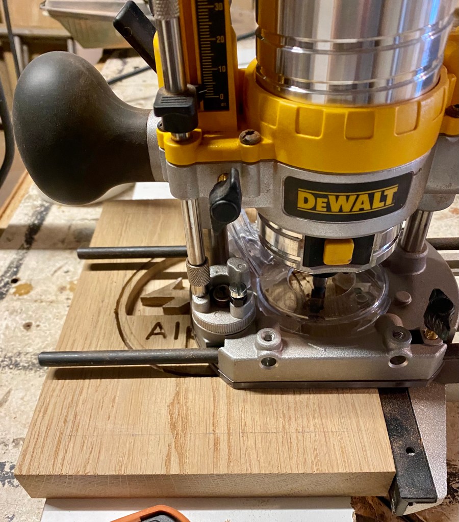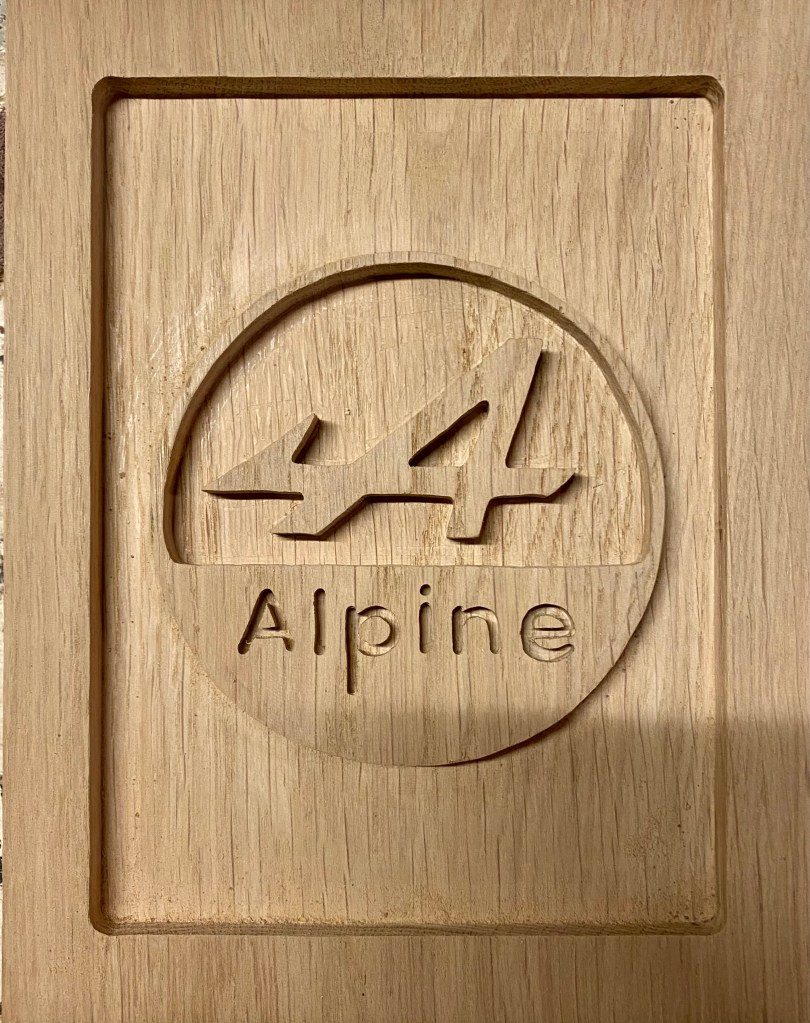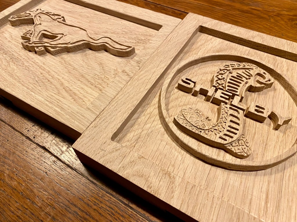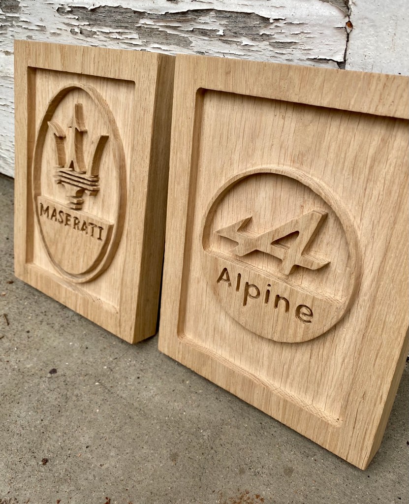 Gravé sur du chêne massif comme un tableau, l’emblème peut resté naturel ou coloré.