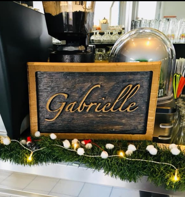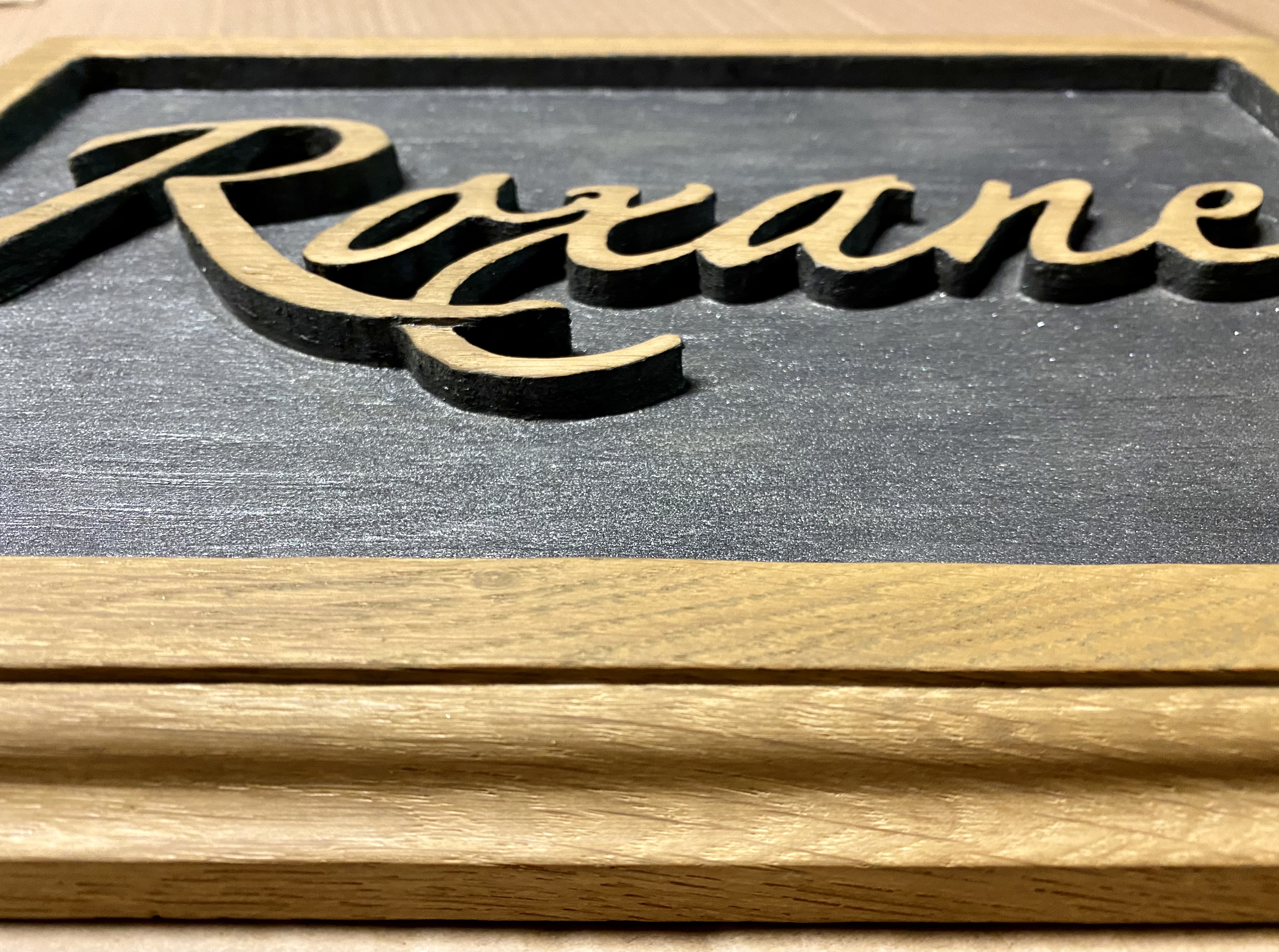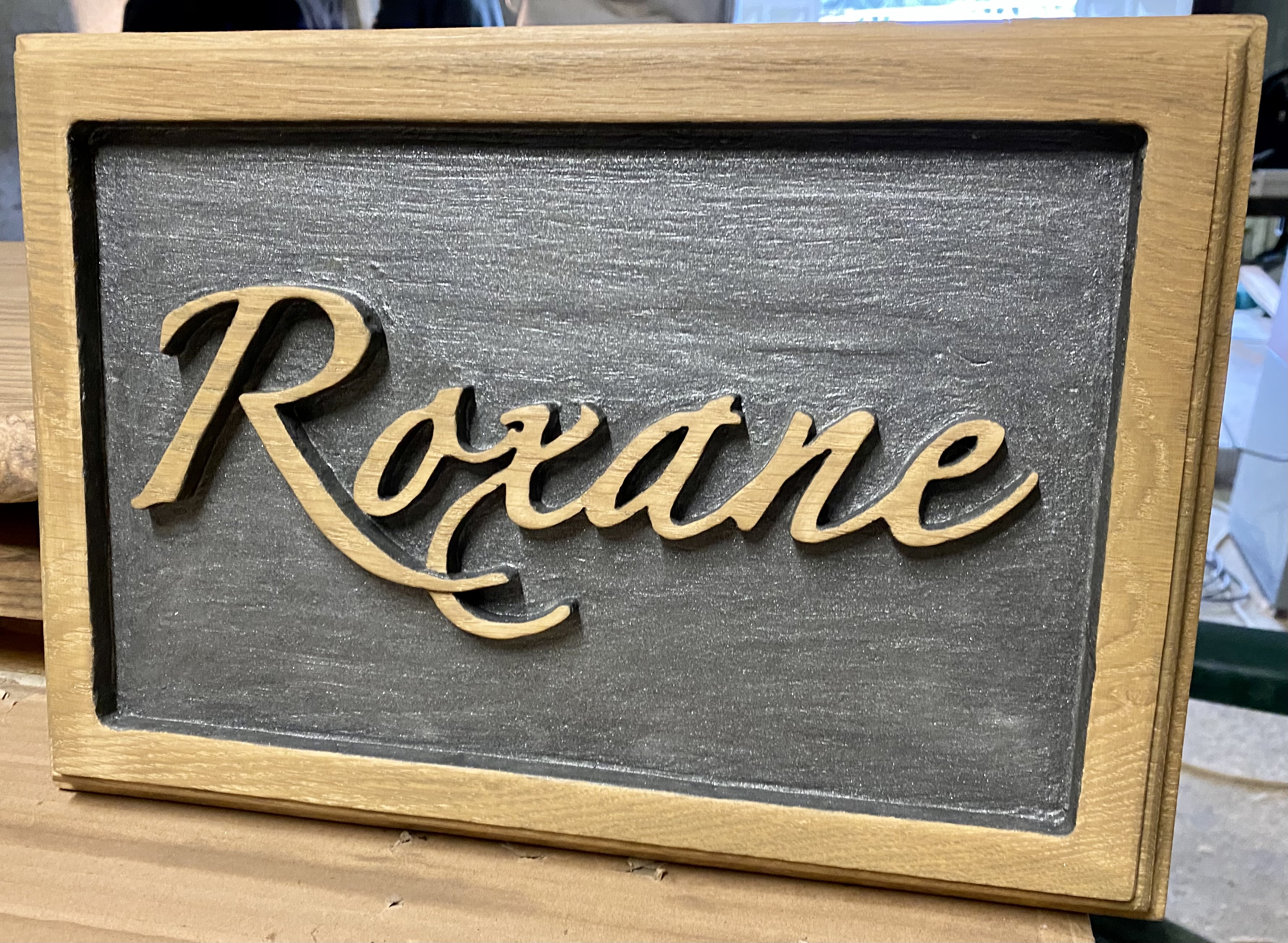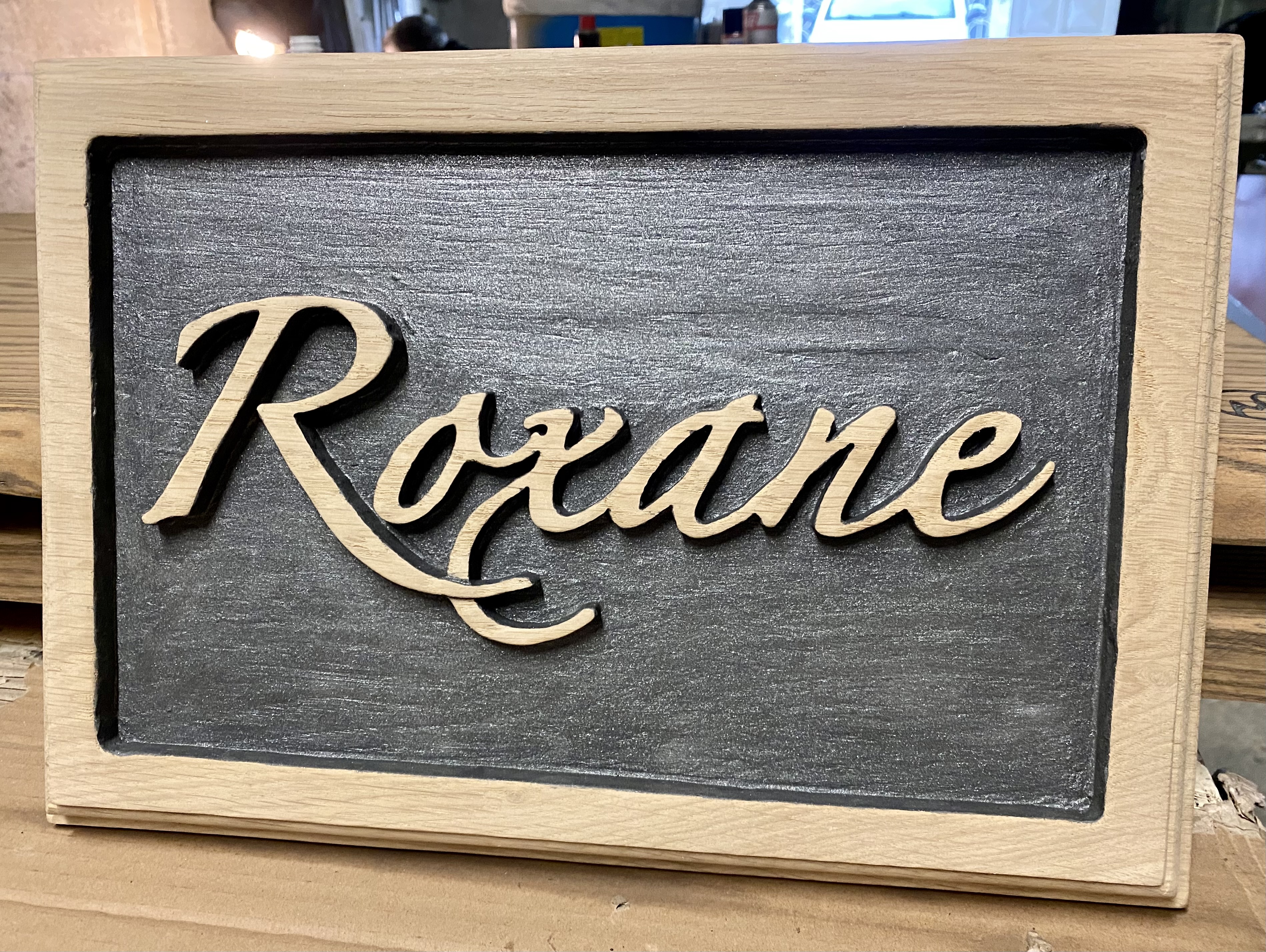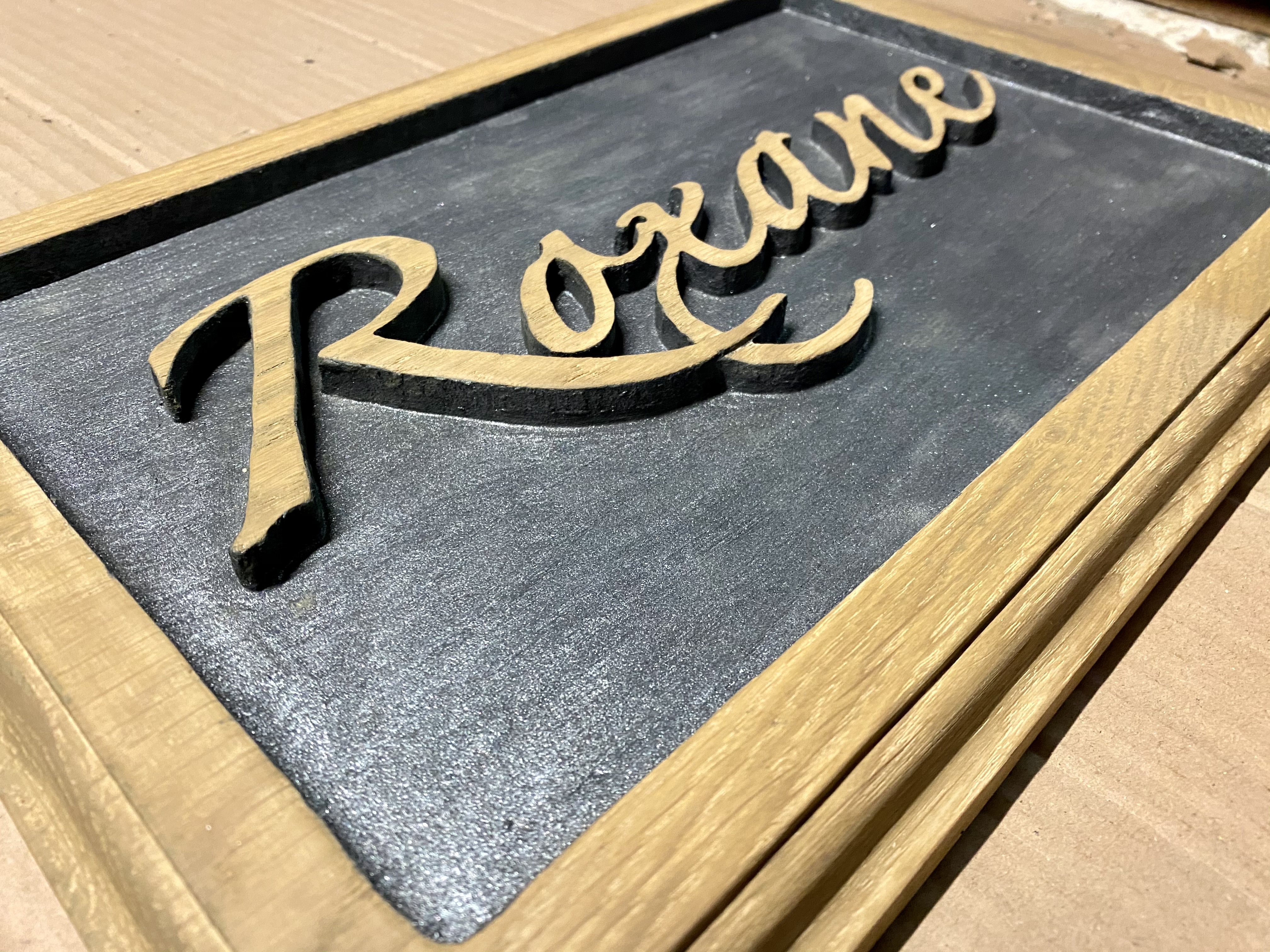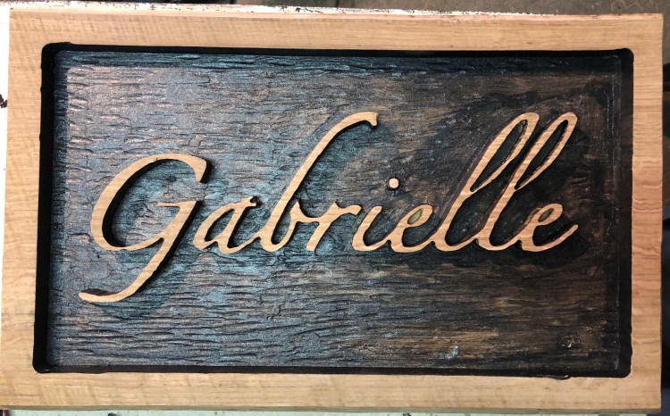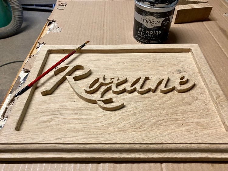 Enseigne en chêne massif avec gravure en relief