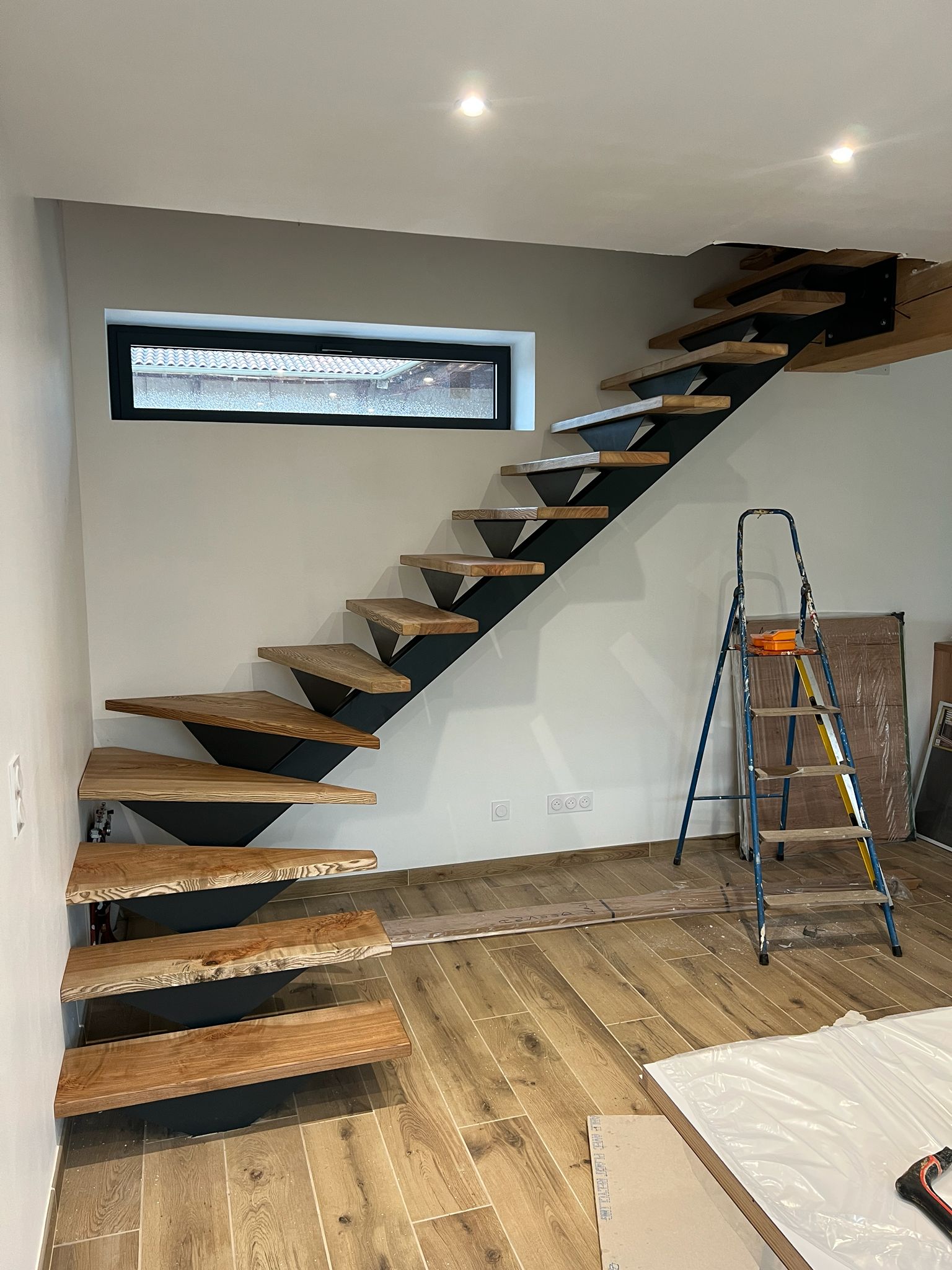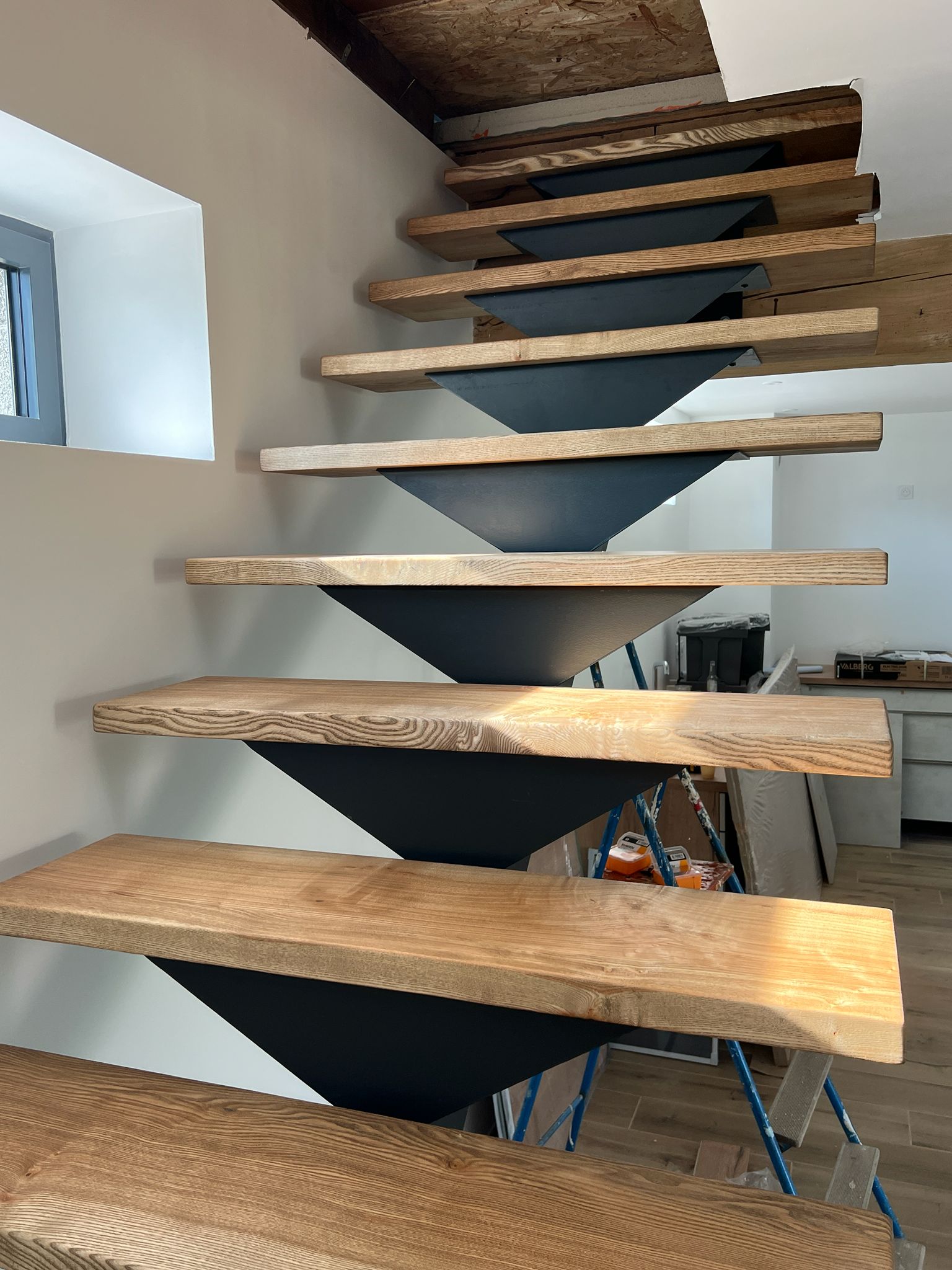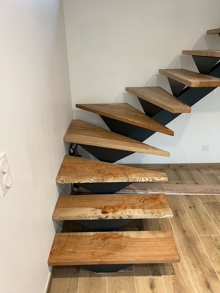 Atelier des Gônes a conçu des marches d’escalier sur mesure en Frêne massif. Le client disposait de la structure métallique et souhaitait moderniser son escalier grâce à l’élégance du bois.
