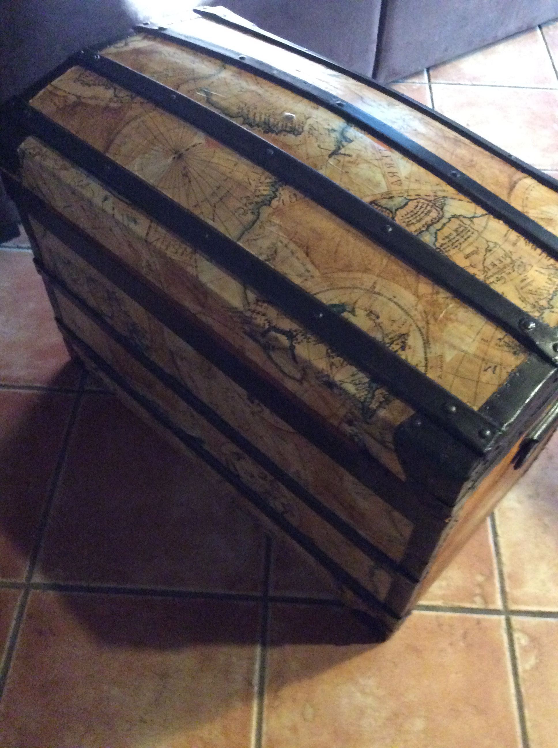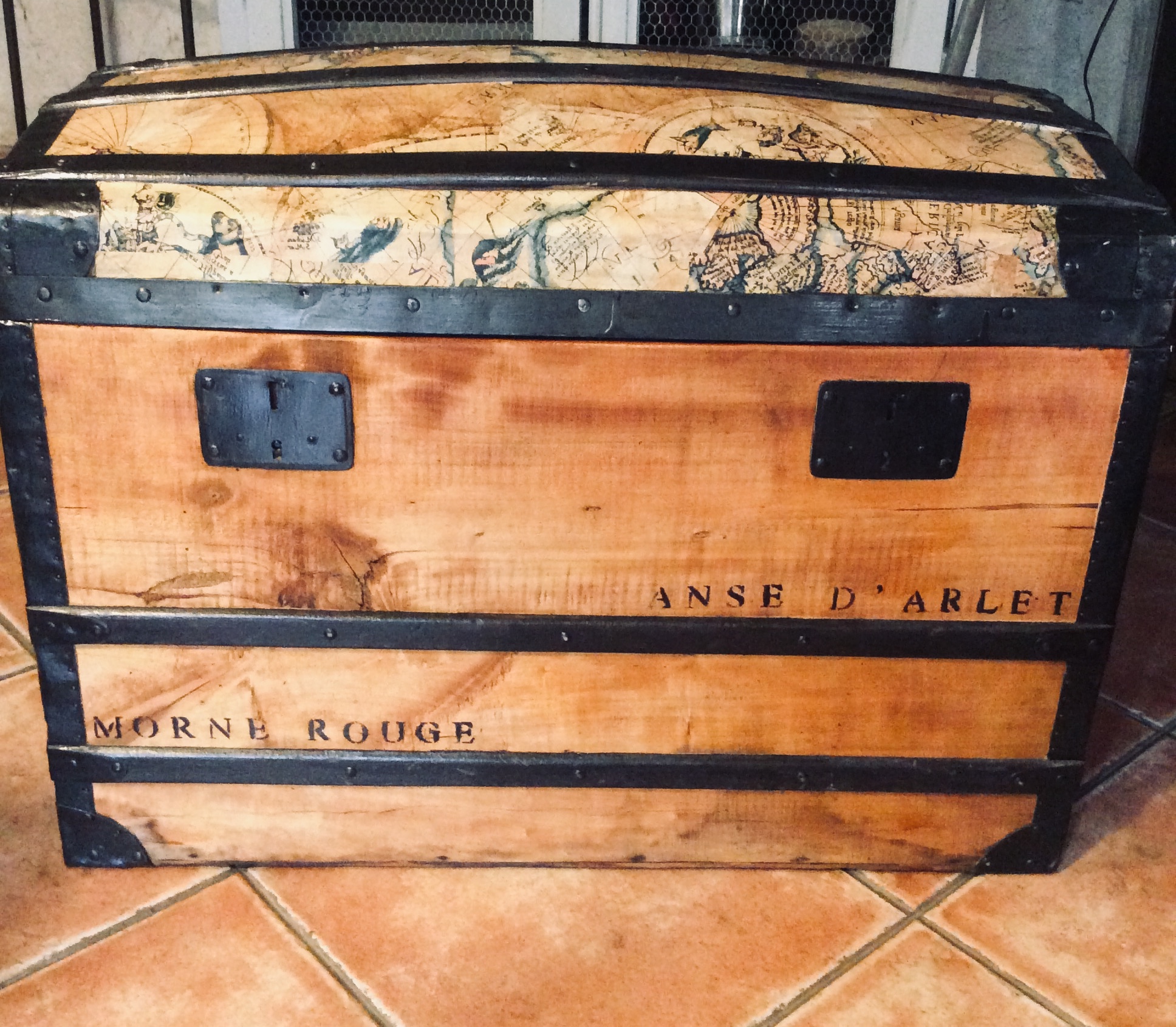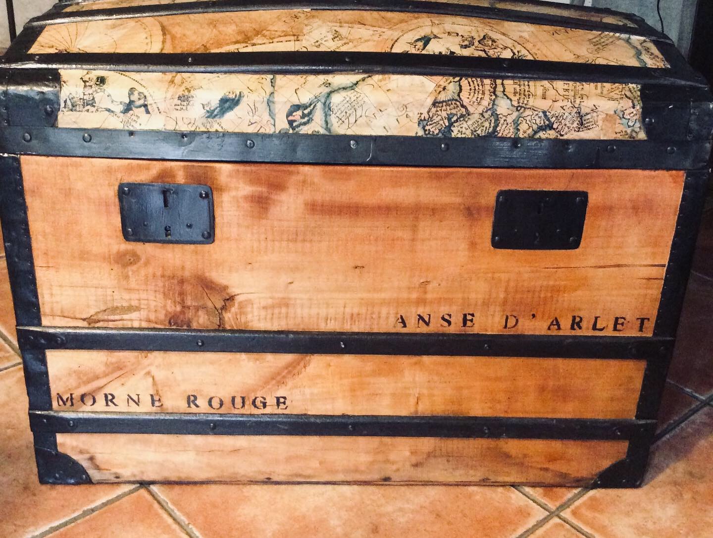 Complètement changée, cette malle de voyage trouvera sa place dans tous les intérieurs. Décorative elle a aussi une utilité pour ranger ce que l’on veut à l’intérieur.