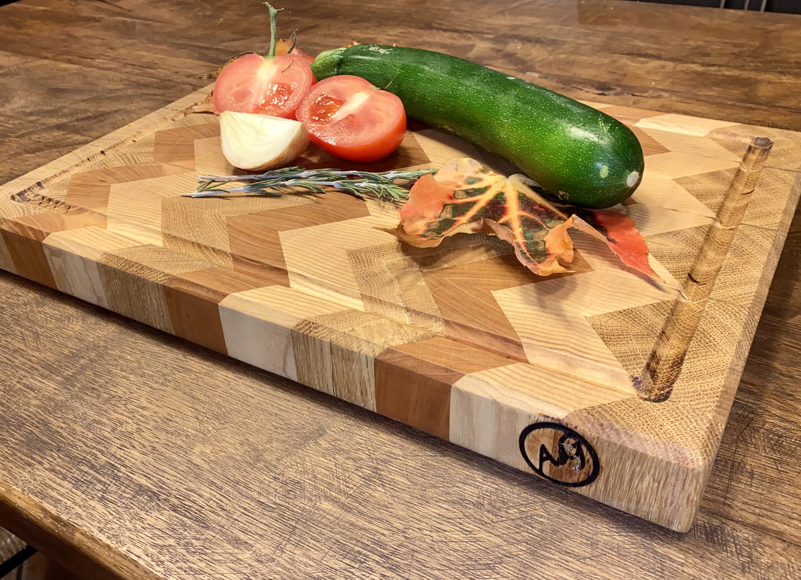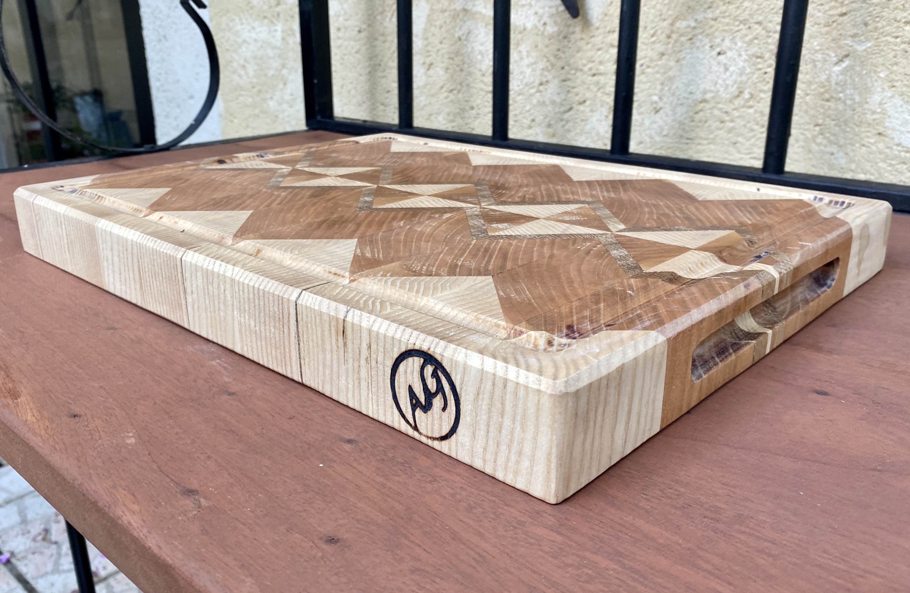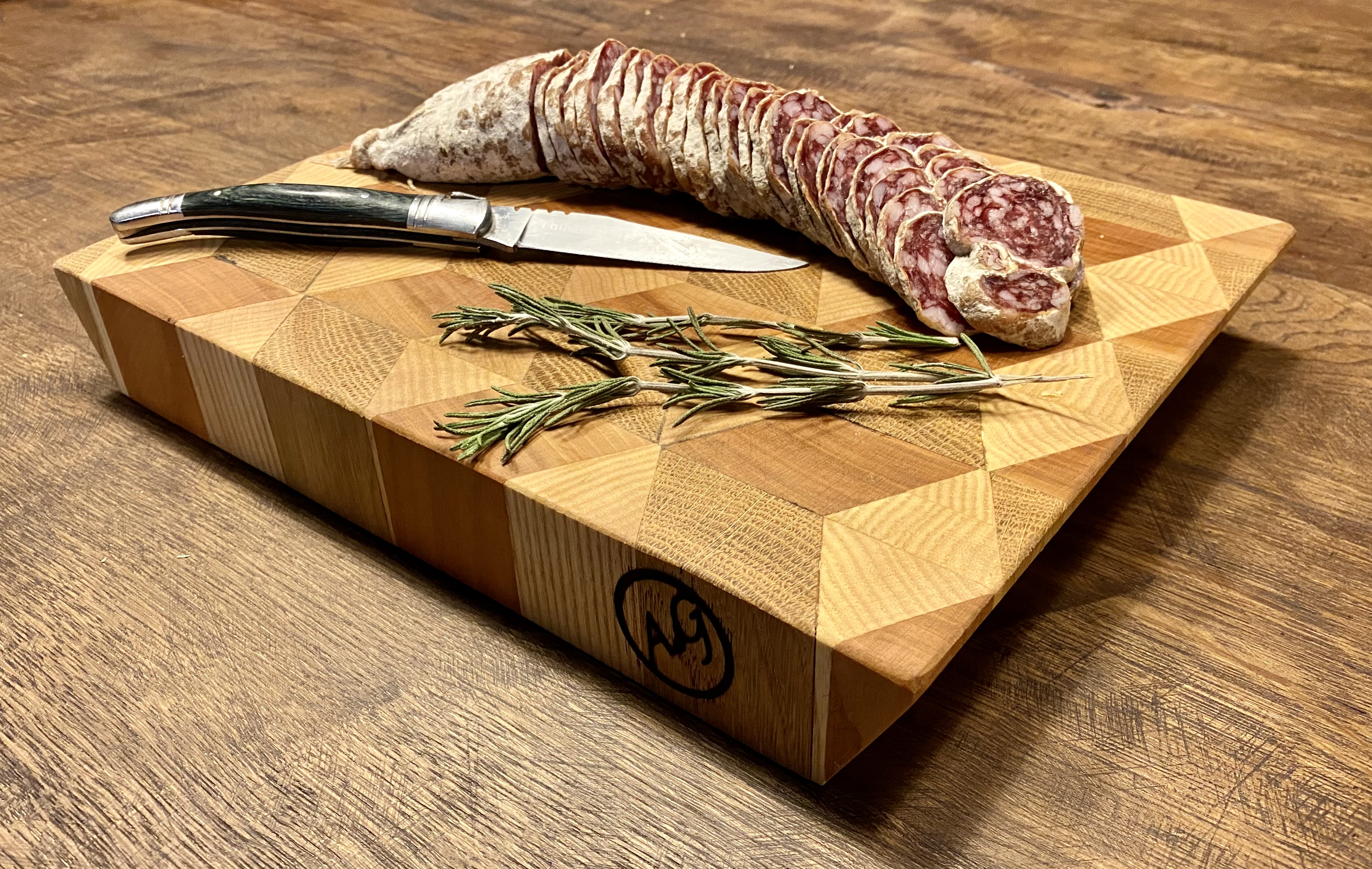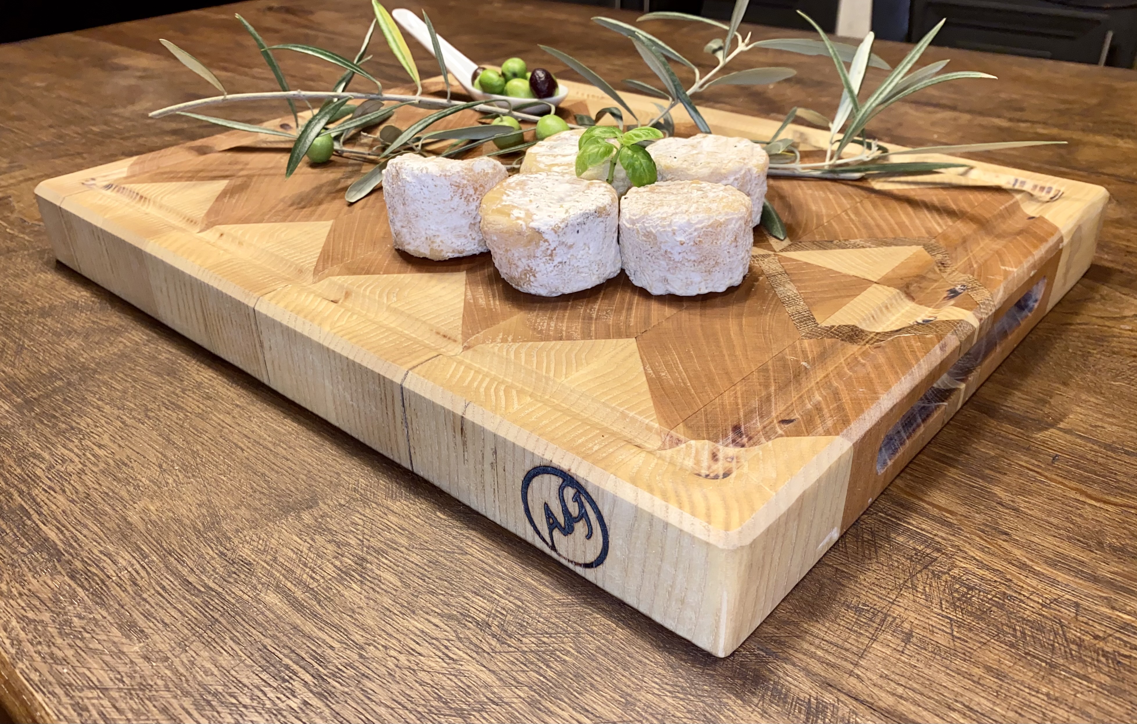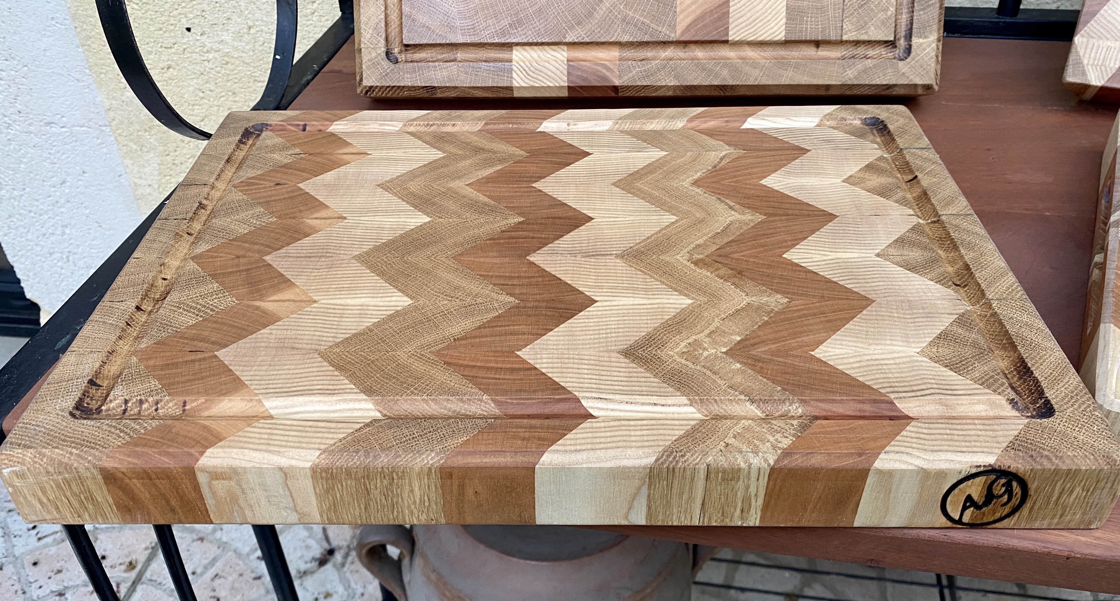 Pour la réalisation de ces planches à découper, trois essences de bois ont été travaillées. Le chêne, le frêne et le merisier.