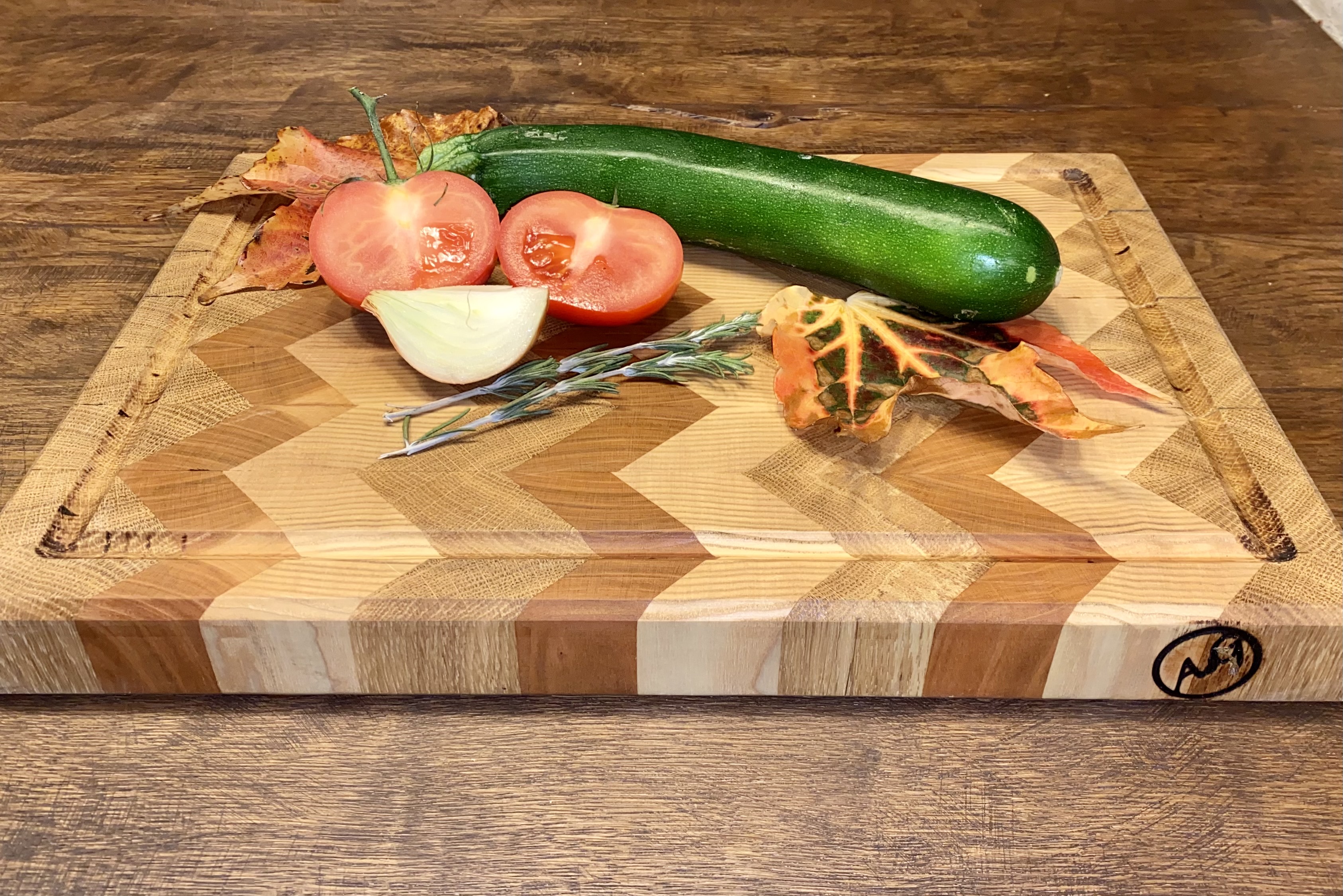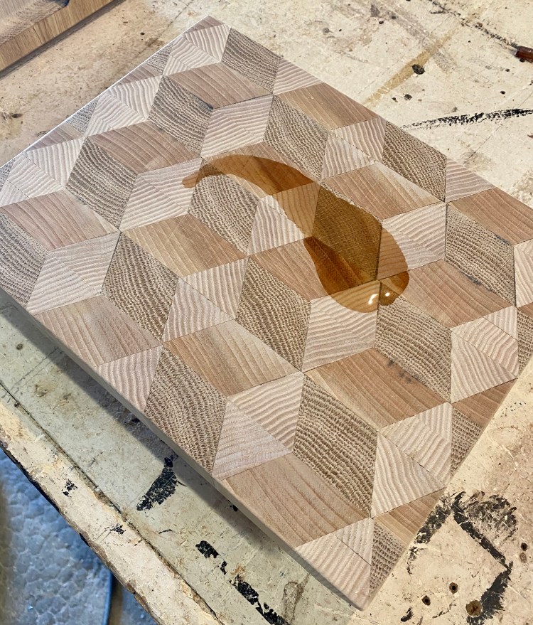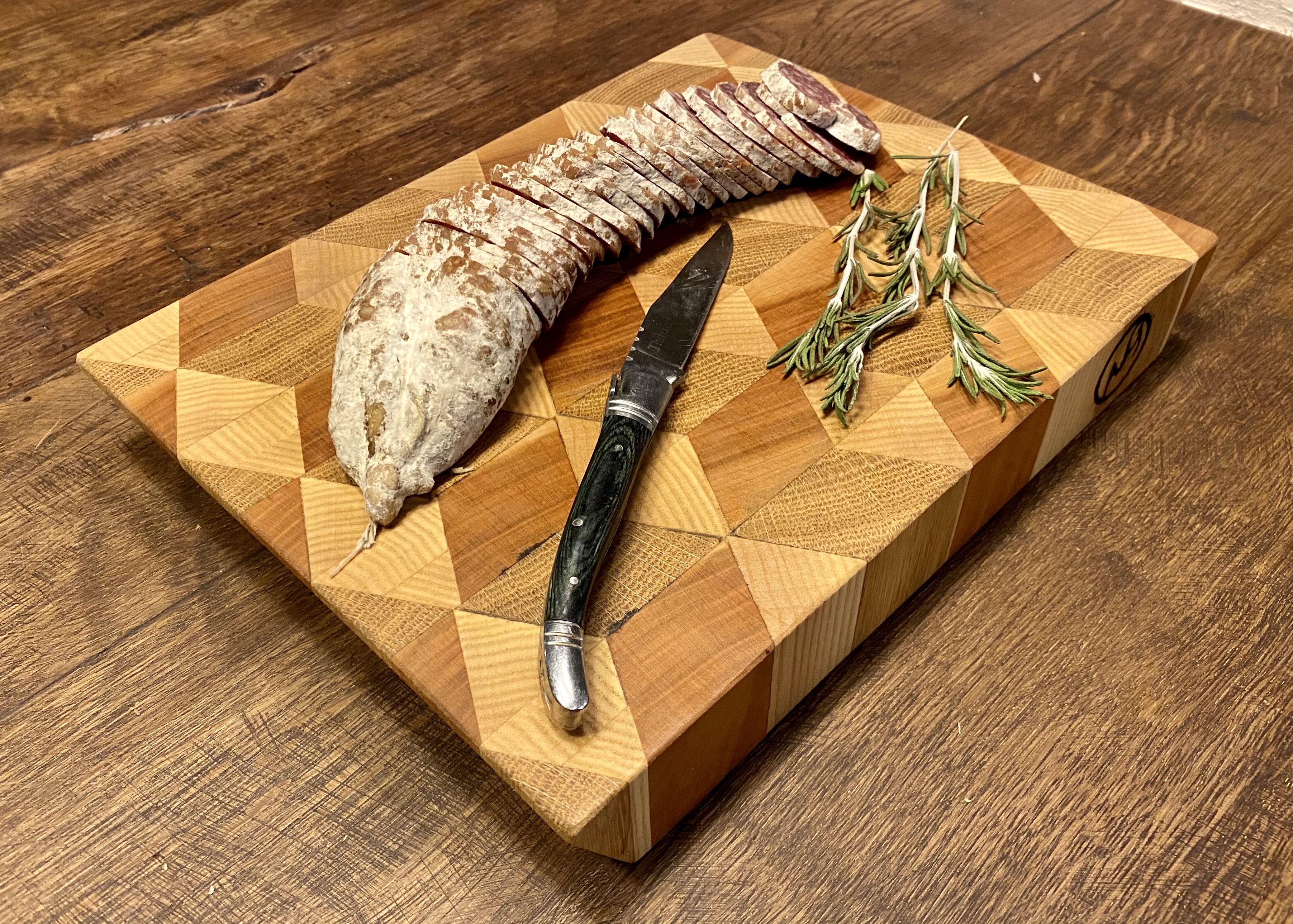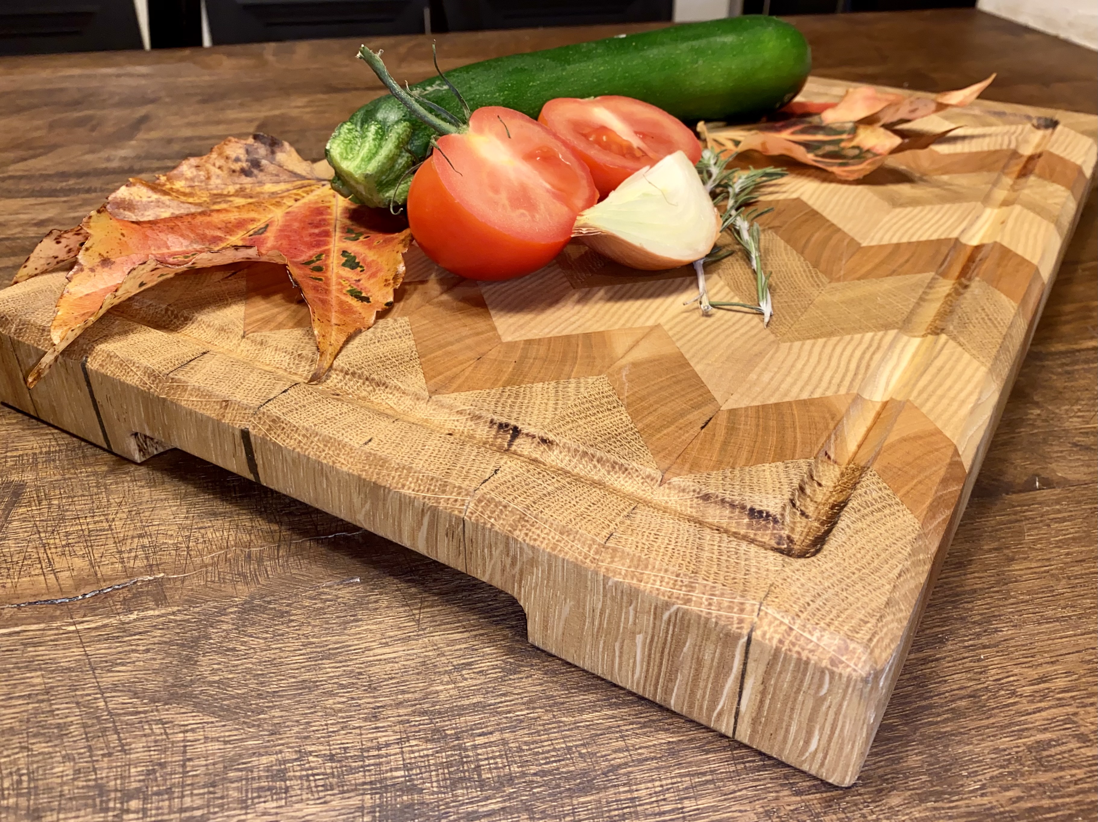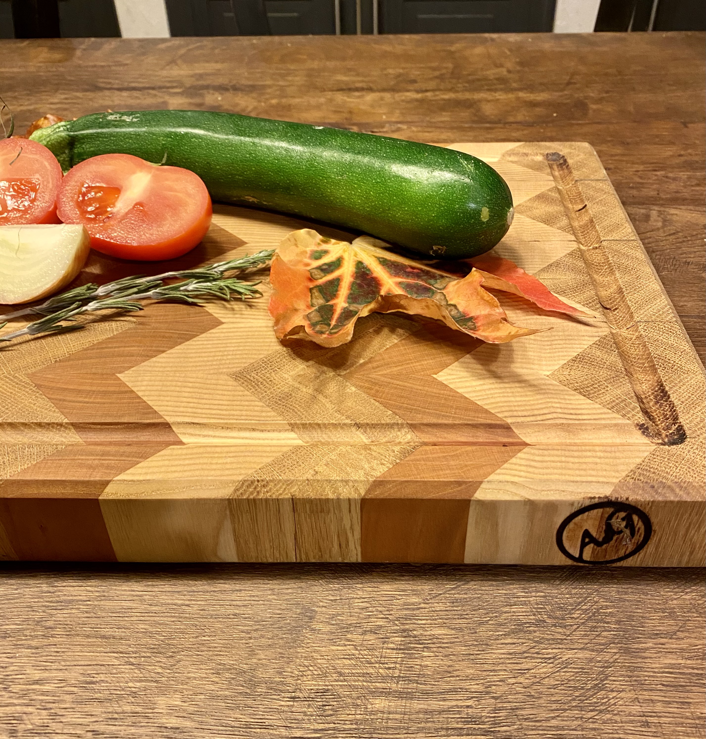 Pour la réalisation de ces planches à découper, trois essences de bois ont été travaillées. Le chêne, le frêne et le merisier.